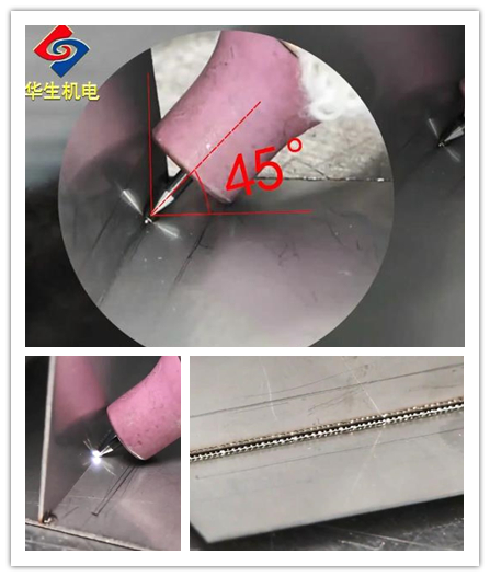 1、焊接时,焊枪摆放角度与工件之间保持为45度。