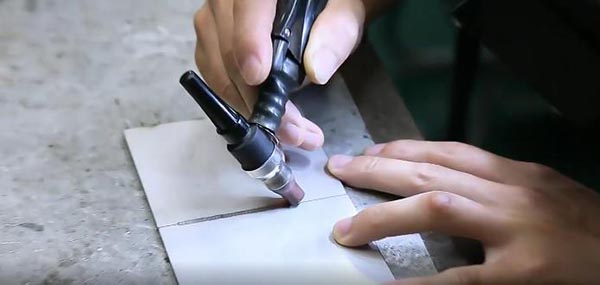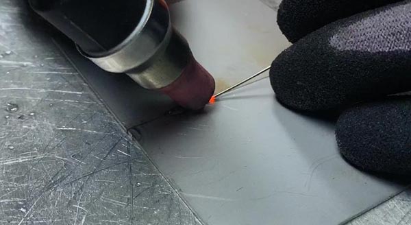 5、进行焊接:焊接时,手拿焊枪与工件之间形成75-90度为宜,角度不要过低或过高,按照焊接方向依次焊接。