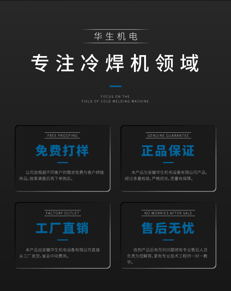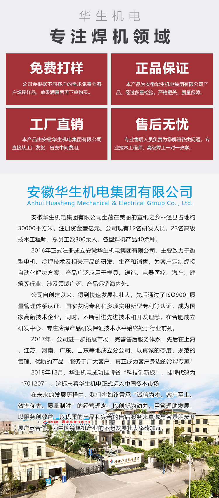 专注冷焊技术20年,主要致力于微型电机、冷焊技术及相关产品的研发、生产和销售,为用户定制焊接自动化解决方案。