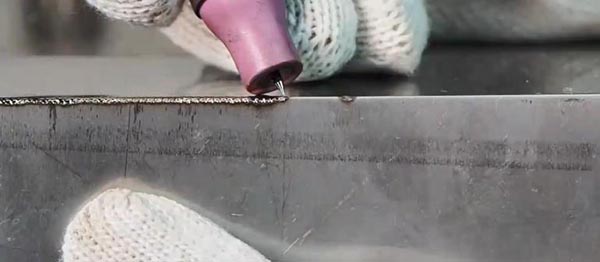 4、钨针的针尖与焊接区域尽量不要超过1毫米的距离,避免挨着工件粘针,可将靠近工件的那一端靠在所焊工件上。