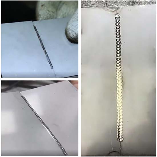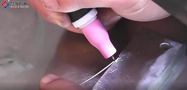 有人听到电脑二字,就觉得冷焊机一定很复杂吧!恰恰相反,正是因为冷焊机采用了微电脑芯片,复杂的部分已经由它完成了,真正的操作反而变得简单起来,容易上手。使用冷焊机进行焊接,根据板材的厚度选择相应的模式即可,重要的是正确把握钨针和焊缝之间的距离以及钨针和焊缝之间的角度。焊接时,手持焊枪的角度和工件之间保持75-90度,按照事先规划好的焊接方向先焊一个焊点,每个焊点压在上一焊点的三分之一处,依次焊接。